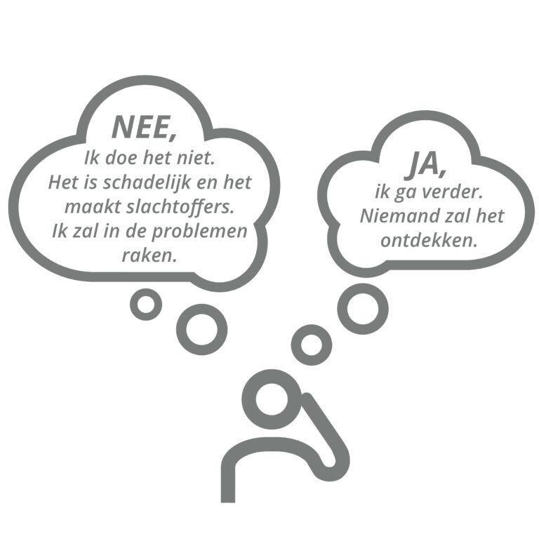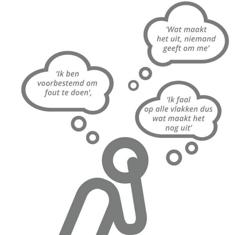 Voorbeelden van vormen van het innerlijk gesprek die ongepast of ongezond gedrag rechtvaardigen: