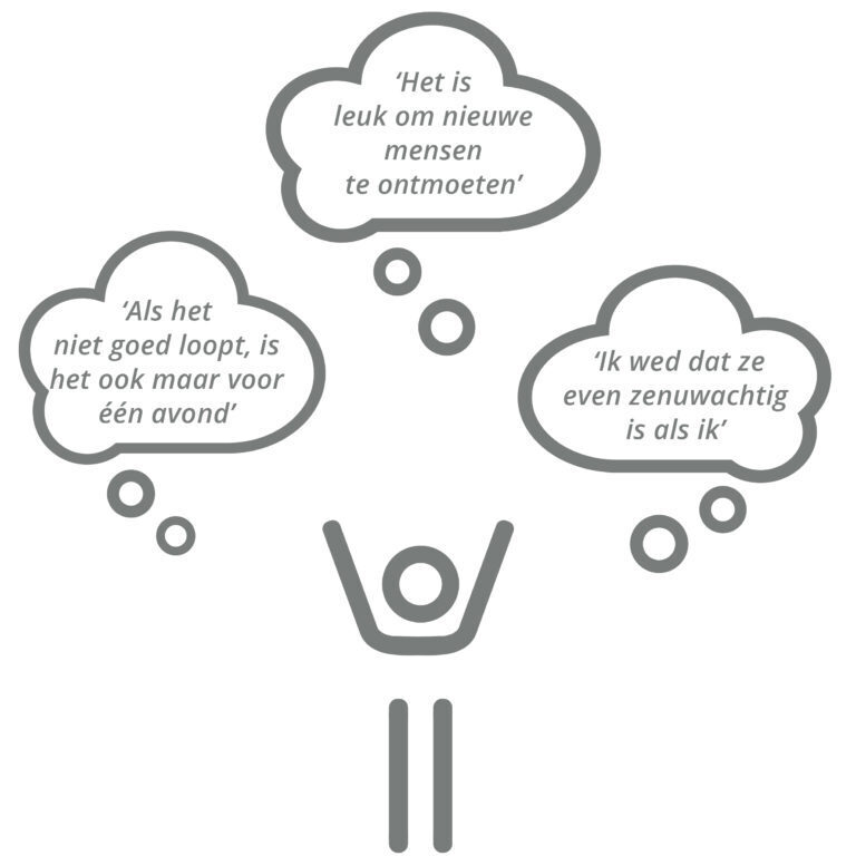 Wanneer je weet dat je met een mogelijke moeilijke situatie moet omgaan, kies dan enkele positieve stellingen uit die je voor jezelf oefent. Deze kan je voor, tijdens en na de situatie inzetten.